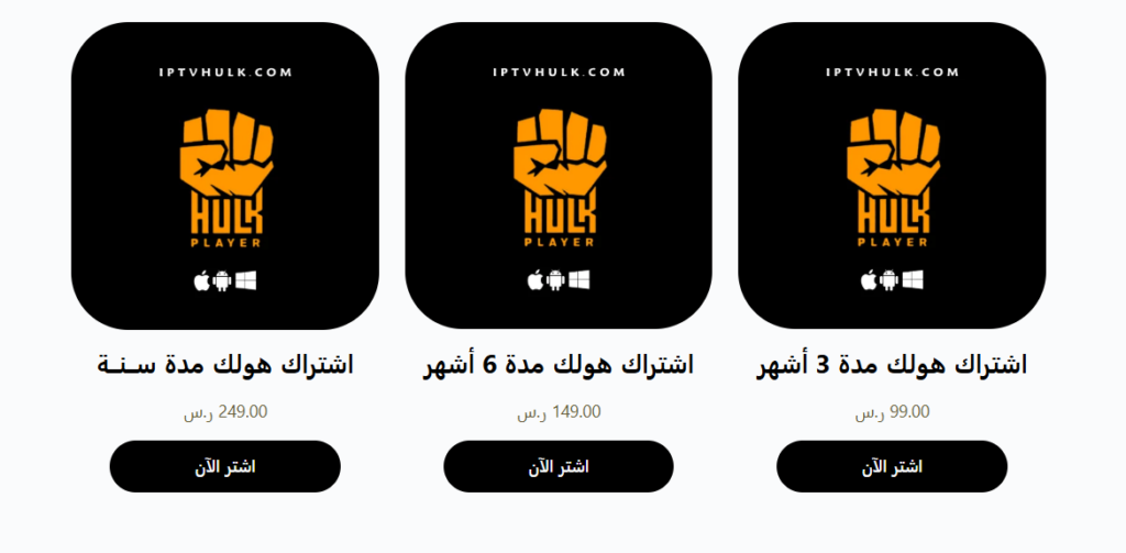 تحميل تطبيق HULK IPTV لجميع الأجهزة: أندرويد، آيفون، آيباد، Apple TV، شاشات Samsung وLG، وأجهزة الكمبيوتر Windows / Mac لتشغيل القنوات والمكتبات بسهولة وثبات عالي.